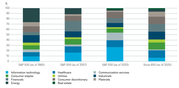 Dergelijke bedrijven vind je niet alleen in de technologiesector, maar ook in de andere belangrijkste sectoren van de beursgraadmeter: telecomdiensten, gezondheidszorg, consumentengoederen en nutsbedrijven. Maar deze sectorindeling heeft zwakke punten en grijze gebieden.