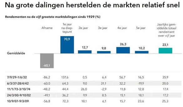 Historisch gezien anticipeert de aandelenmarkt meestal op herstel en veert ze op voordat de economie omslaat.